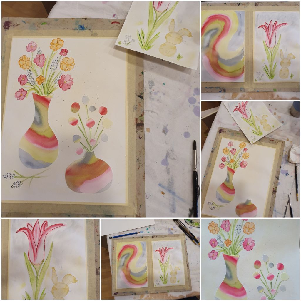Um Lob und Bewunderung einzuheimsen, habe ich eine Collage meiner Kunstwerke unten eingefügt.