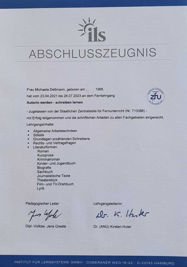 Ich war quasi schon alt, als ich meine Fachhochschulreife abschloss, irgendwo Anfang dreißig. Mein damaliger Mann wollte die Fachhochschulreife nachholen, da er ein Studium anvisiert hatte. Er war bei der Bundespolizei und wollte gerne in den gehobenen Dienst. Naja, was sollte ich in meiner Freizeit, neben dem Vollzeitjob und meinem Pferd, so allein zu Hause rumsitzen, dann machte ich halt mit: „Da hab ich was in der Hand… Da hab ich was Eigenes. Da hab ich mein Jodeldiplom.“ ( Zitat Loriot aus der „Kosakenzipfel“). Wir haben die Fachhochschulreife in Bayern über das Telekolleg erarbeitet. Ich weiß gar nicht, ob es das heute noch gibt: Fernsehsendungen zu den entsprechenden Themen. Der Lehrstoff wurde über die Mattscheibe von Damen und Herren aus den 70ern verabreicht, sehr gut an den Pullundern in lebendigen Farben zu erkennen. Samstags ging es in die Schule, in den Präsenzunterricht, der Rest war Selbstdisziplin. Nach zwei Jahren Fernsehen, Samstagen im Schulgebäude und Bücher wälzen, war es geschafft: Ich hatte meine Fachhochschulreife! Hurra! Und jetzt? Nix. Die Fachhochschulreife machte sich in meinem Lebenslauf gut, mehr aber auch nicht. Später, im weitaus noch reiferen Alter von über fünfzig Jahren, man mag es kaum glauben, kam mir doch glatt meine Fachhochschulreife wieder in den Sinn. Schuld daran war eine Werbebroschüre der ILS. Tolle Studiengänge wurden präsentiert zu, meiner Meinung nach, saftigen Preisen. Aber wie der Zufall es wollte, hatte diese Werbebroschüre auch gleich ein Rabattangebot für mich im Gepäck: 25% Nachlass auf…, wenn… Da konnte ich natürlich nicht „nein“ sagen. Ich klappte die Broschüre auf, kreiselte mit meinem Zeigefinder irgendwo in der Luft herum und sagte: „Der Studiengang, auf dem mein Finger landet, gehört mir, den werde ich studieren!“ Mein Finger stürzte wie ein Greifvogel in die Tiefe und landete auf dem Kurs „Autor werden – Schreiben lernen; Die Autorenwerkstatt“. Ein Zeichen! Ich fand das tatsächlich recht lustig, weil mir Schreiben zum einen bekanntlich viel Spaß machte und ich zum anderem für diesen Kurs meine Fachhochschulreife gar nicht benötigte. Dieser Kurs war kein richtiges Studium, sondern ein Lehrgang. Trotzdem, ich habe ihn gebucht und 18 Monate, wieder neben meinem Vollzeitjob, vieles rund um das Thema Schreiben gelernt. Ich durfte in den Bereich Journalismus reinschnuppern, einiges über die Entstehung von Sachbüchern und Biografien lernen, Krimis untersuchen, Drehbücher und natürlich Kinderbücher analysieren. Neben den einzelnen Themenbereichen zu Büchern, wurde Wissen über zum Beispiel Lyrik, stilistische Mittel, die Sprache an sich und vieles mehr angeschnitten. Zu jedem Thema mussten Hausaufgaben eingereicht werden. Ich habe einen kurzen Krimi verfasst, ein Bereich, den ich nach dem Feedback des Tutors gleich wieder verlassen hatte. Ich habe ein Drehbuch begonnen – auch nicht so wirklich mein Talent. Ich habe Zeitungsartikel geschrieben, Gedichte, die sich reimen oder auch nicht, erfunden und und und… Als der Themenblock „Kinderbuch“ dran war, hatte ich so gar keine Lust darauf. Was bitte schön ist spannend daran, ein Kinderbuch zu schreiben. Und dann umfasste dieser Themenbereich auch noch drei!!! Lehrbücher. Aber es nützte ja nichts, auch dieser Block musste abgeschlossen werden. Am Ende des Tages war das Kinderbuch genau das, was mir am meisten Spaß und Freude gemacht hat. Während dieser Zeit sind meine beiden Freunde Murgel & Mots entstanden. Sie halfen mir, wenn ich keine Lust mehr zum Lernen hatte, frustriert war, weil alles nicht so funktionierte wie ich es wollte oder ein Feedback eines Dozenten mit sehr vielen Tipps und Anregungen retour kam. Ich brauchte gute Laune? Dann habe ich mich in den Wunderwald verdrückt und mit den beiden Monstern Abenteuer erlebt. Ich glaube, der Lehrgang hat mir gut getan. Er hat mich ein wenig in die für mich richtige Richtung geschubst und mir den Mut verliehen, meine Geschichten aufzuschreiben und zu veröffentlichen. Ich habe so viel dazu gelernt.